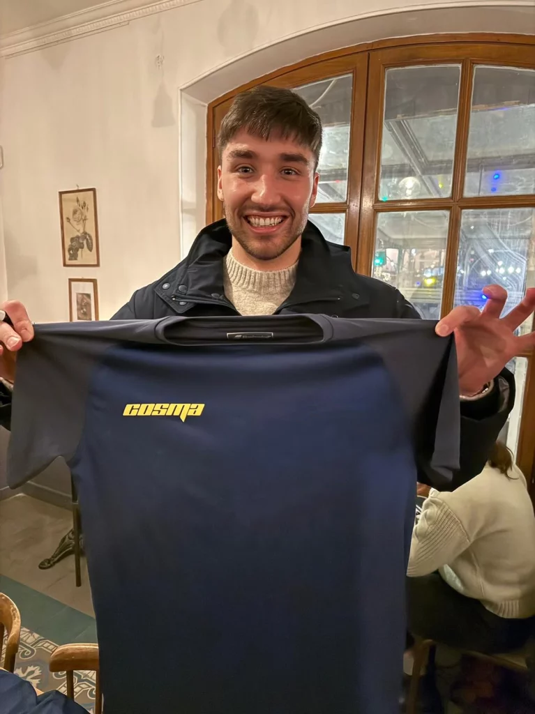 Le t-shirt du club présenté par Toma Jr. Popov, et le flocage « COSMA BAD » à l’arrière!